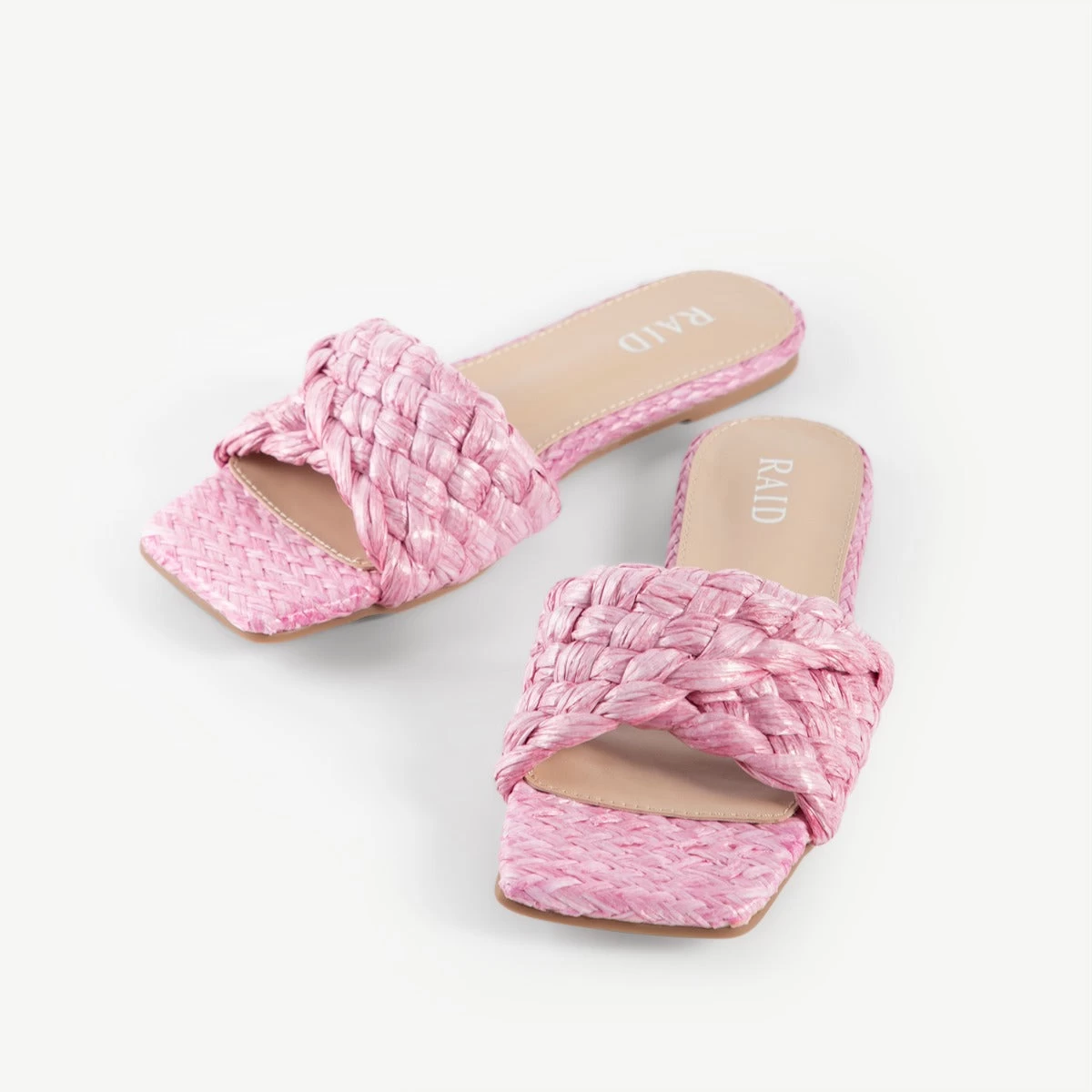 Achieve effortless style with RAID’s Breezy Flat Mules. These sophisticated silhouettes boast soft pink raffia with a modern square shape, creating an eye-catching look perfect for taking any outfit to the next level. Step out in delicate grace and confidence with these stunning mules!