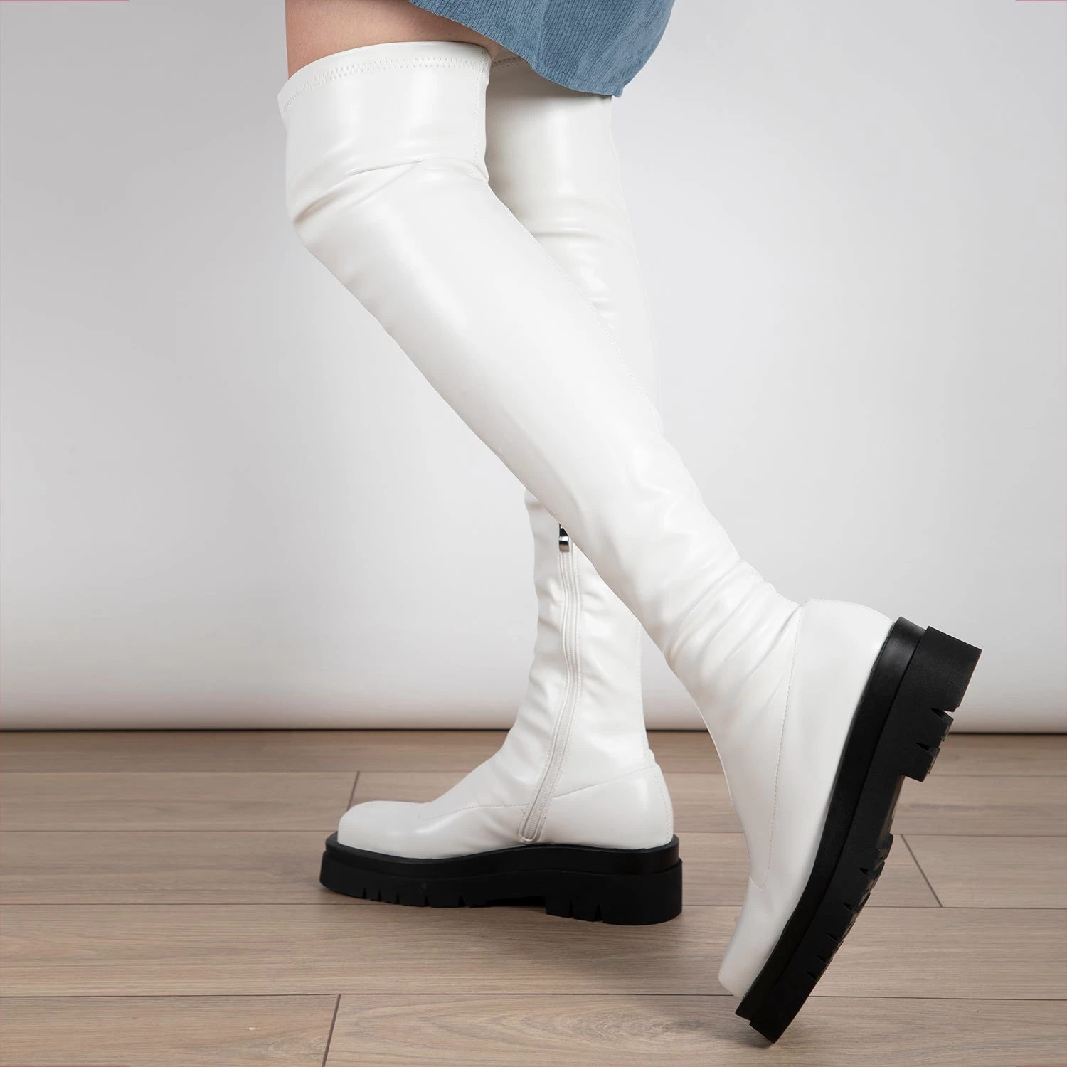 Experience style like never before with the RAID Fabrizio Over the Knee boot! Embrace the unique design of its square toe and over the knee design, while an all-white upper and black sole complete the look. Step out in style with these fashionable, must-have boots!