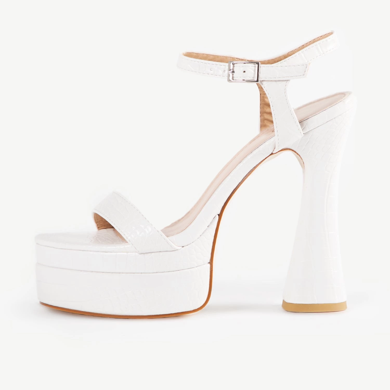 Step up your style game with the RAID Gracelyn Platform Heel! Featuring a sleek white croc finish and an ankle strap, this chic number adds a dose of high-impact glamour to any look. Plus, its platform sole makes it extra comfy. Perfect for any fashionista!